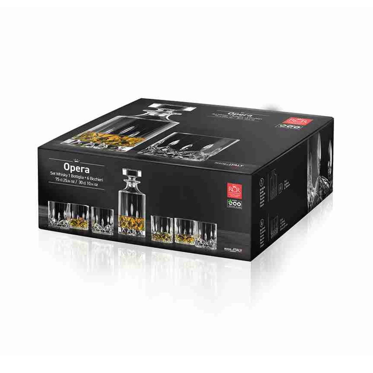 RCR Opera Set på 18 dele er et fuldendt glas-sæt designet til dem, der vil samle hele serveringen omkring ét gennemført design. Fremstillet i Luxion-krystalglas, som er 100% blyfri, kombinerer sættet æstetik og funktionalitet i en kvalitet, der afspejler RCRs stolte italienske traditioner. Som Made in Europe-produkt leverer Opera Set både optisk klarhed og holdbarhed, så det fungerer lige så godt i professionelle miljøer som i private hjem, hvor borddækningen skal være konsekvent og elegant. Sættet er ideelt til middagsselskaber, receptioner og hotelservering — et komplet valg for dem, der ønsker et sammenhængende glas-univers.